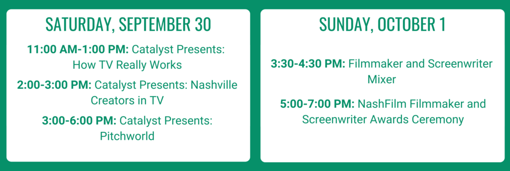 Every great show starts with an idea, and every idea needs a great pitch to sell it. Pitchworld is a platform for content creators to develop their pitch with an audience in a fun and supportive setting. During the 54th Nashville Film Festival, selected creators will present their amazing ideas for TV shows, podcasts, and web series in five-minute onstage pitches, and they’ll get feedback and tips from experienced professionals. Catalyst Story Institute is the official mentorship partner of the National Academy of TV Arts & Sciences. Its mission is to make it possible for episodic storytellers to make a living they love from where they love living.